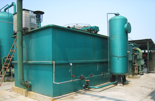 氣浮法的原理是在全部原水由泵加壓至0.3~0.5Mpa,壓入溶氣罐,用空壓機向溶氣罐壓入空氣,將大量空氣溶入水中,并通過釋放器驟然減壓、快速釋放,在水中產生大量微細氣泡,和反應后的凝聚物粘附在一起,從而浮于液面之上,使污染物得以從廢水中分離出來,達到凈水目的。
